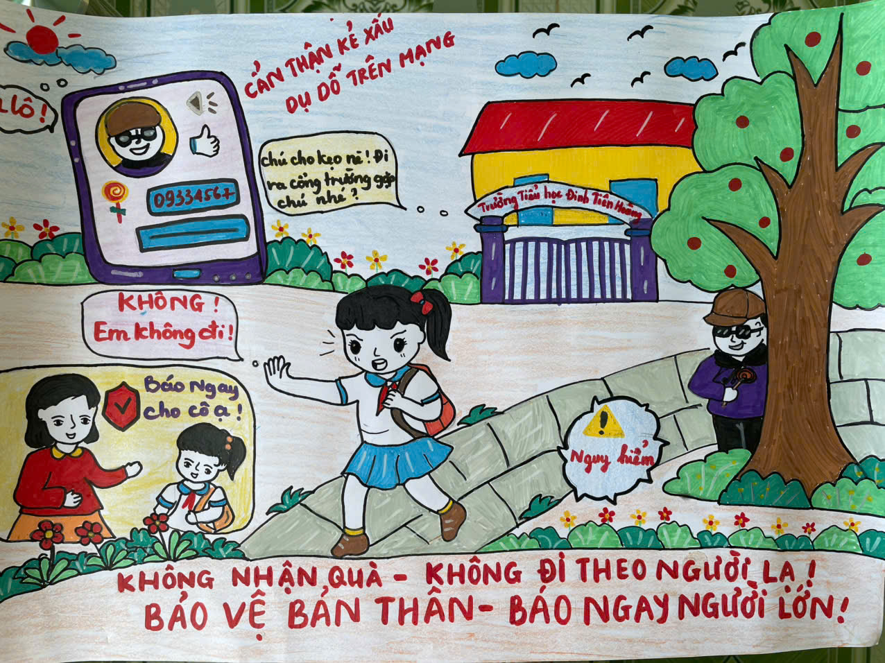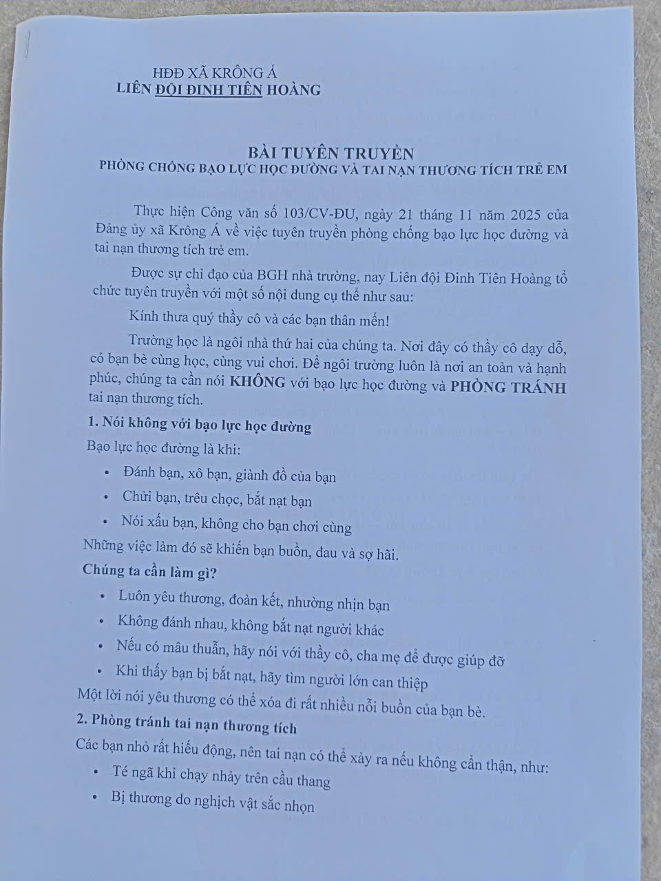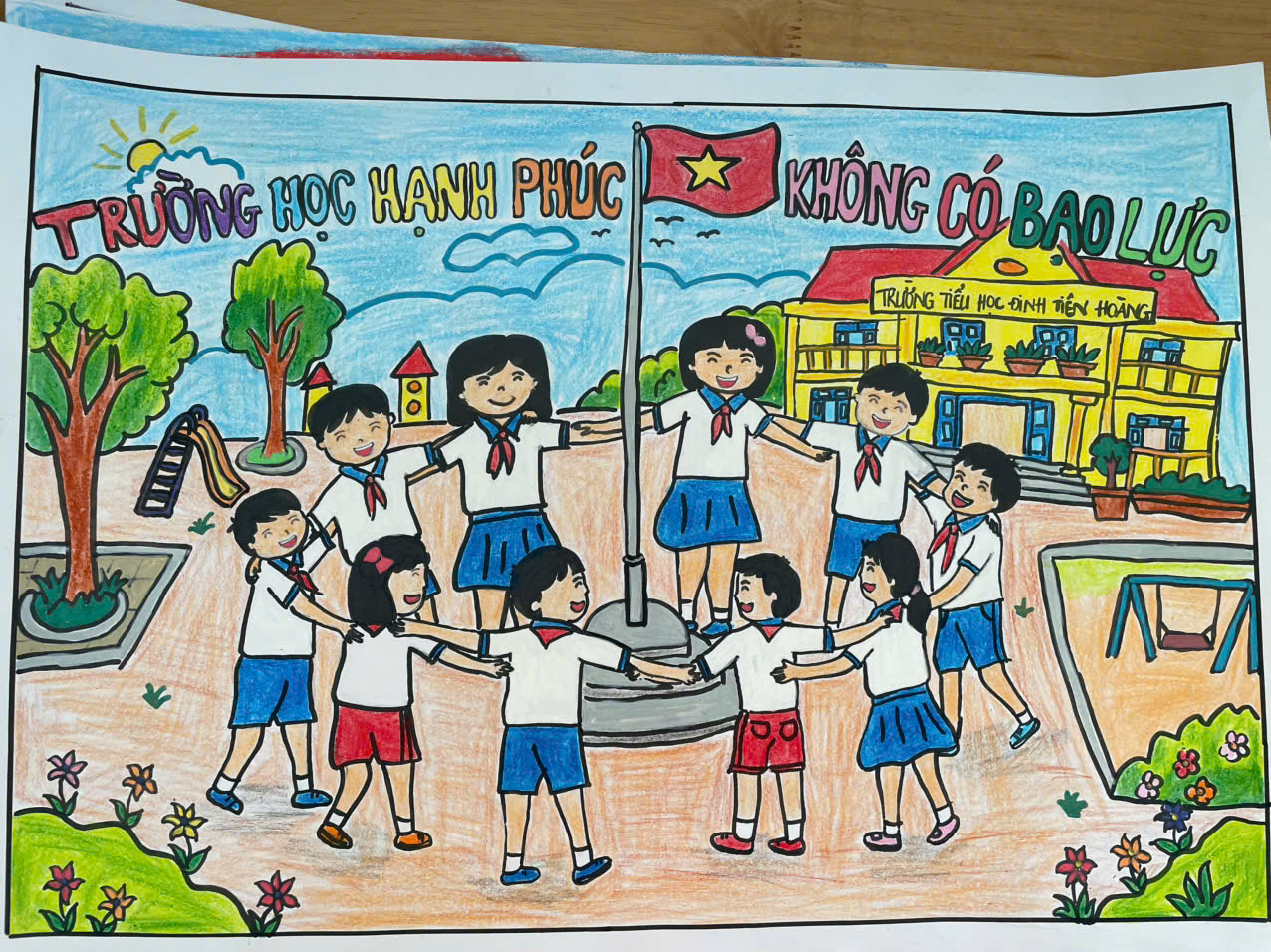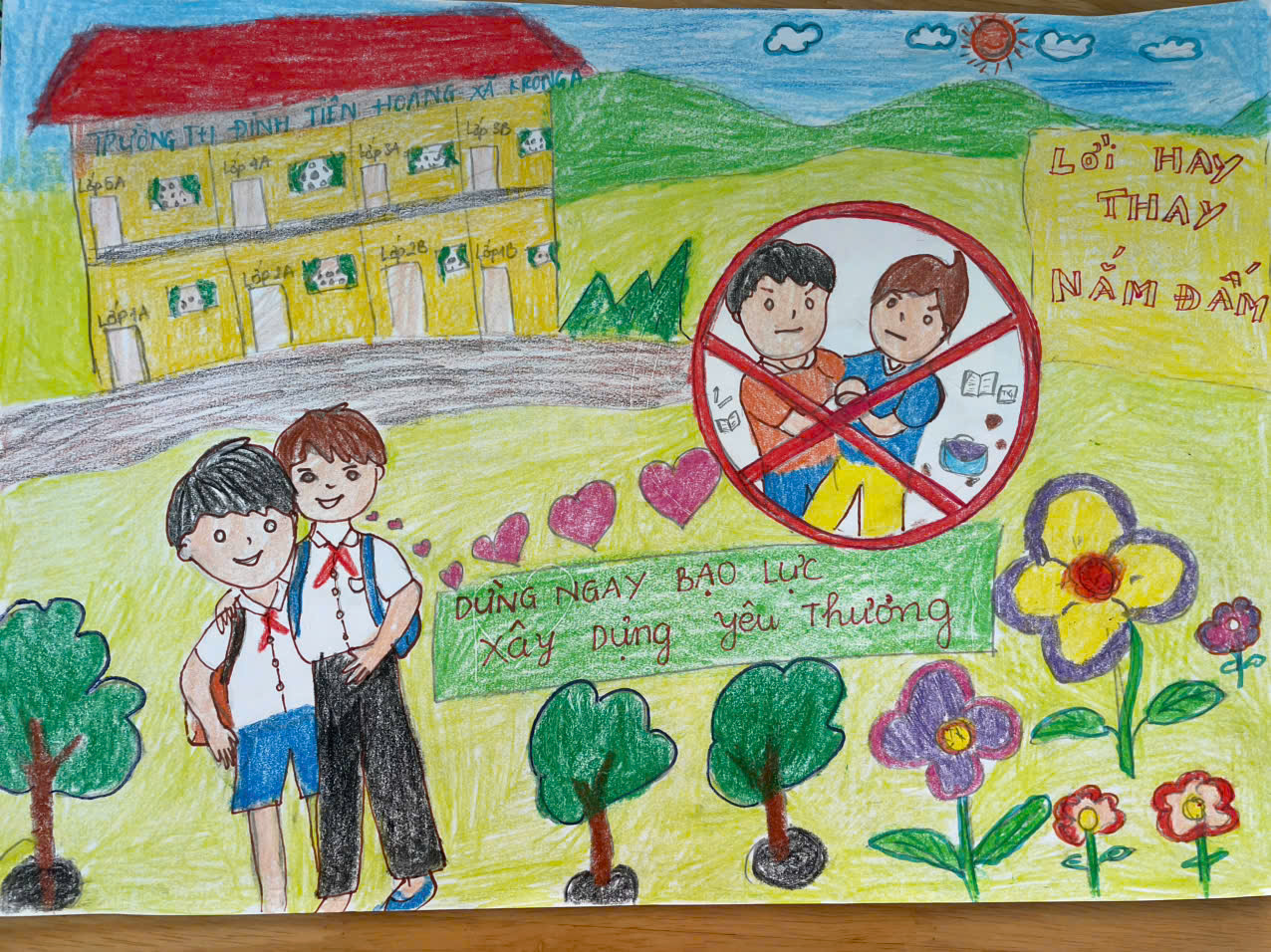 Liên đội Đinh Tiên Hoàng tuyên truyền Luật Trẻ em, tác hại của ma túy, kích thích. Tổ chức các hoạt động Cuộc thi “Sáng kiến bảo đảm trật tự trường học về phòng, chống bạo lực học đường” “