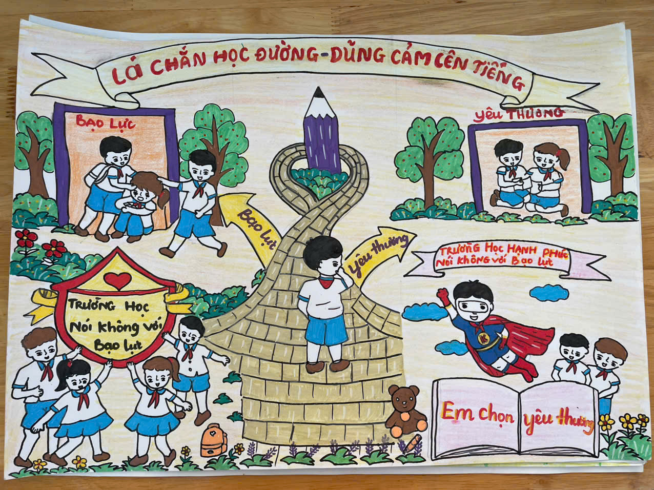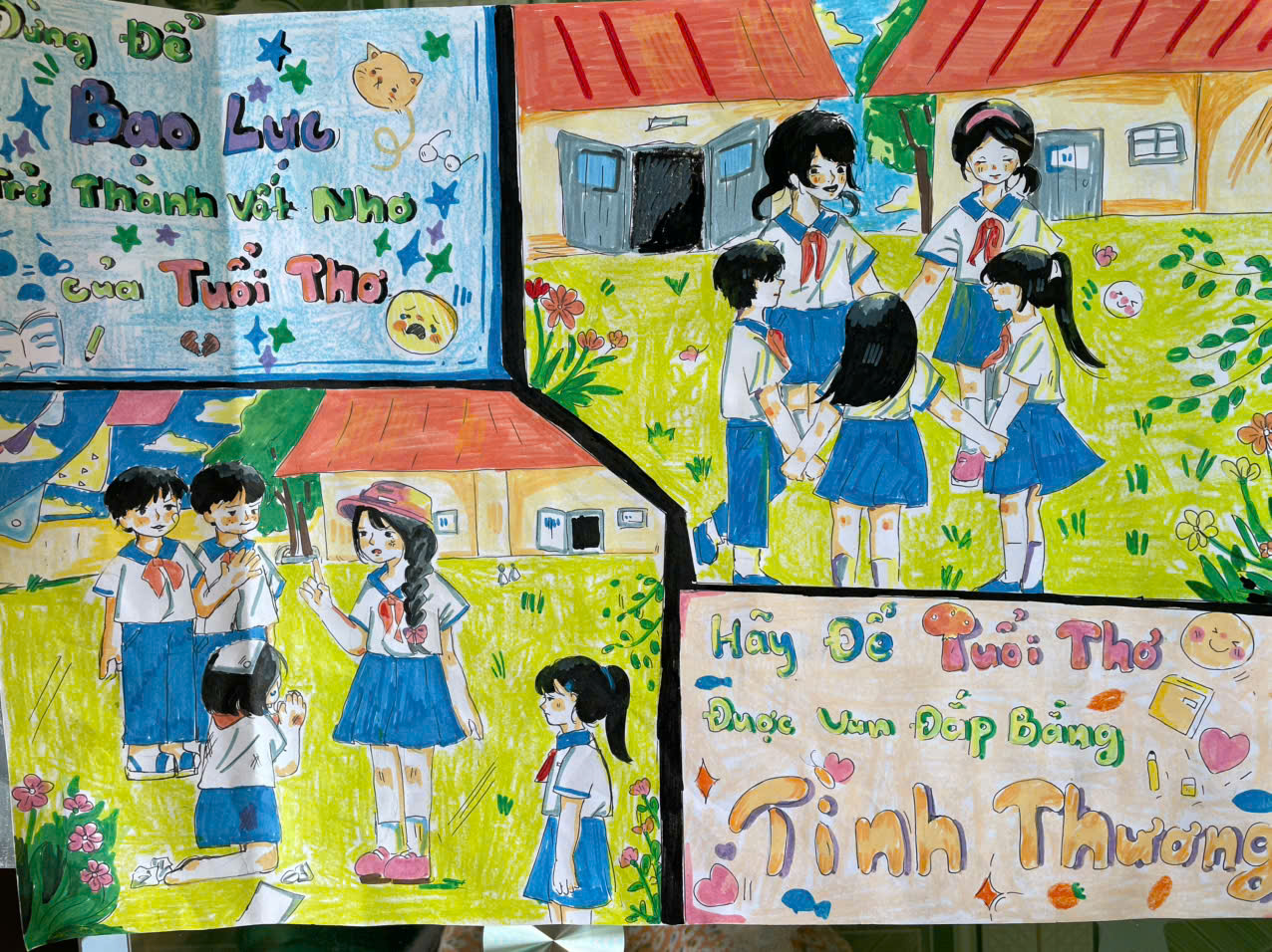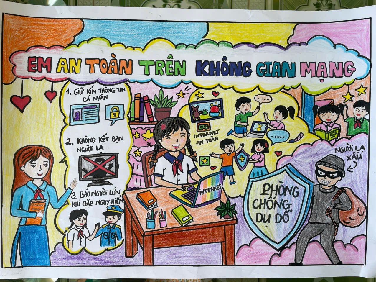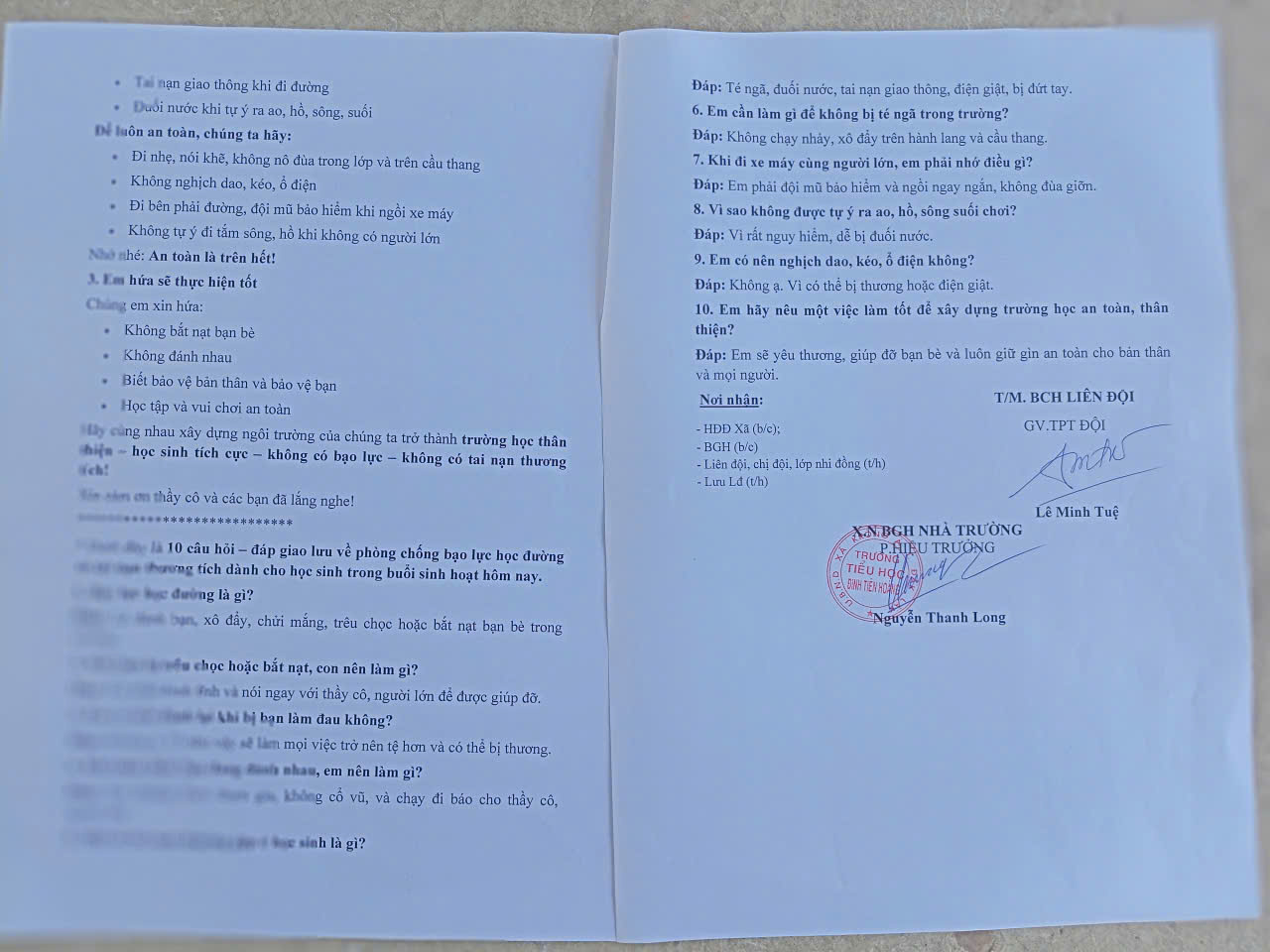 Liên đội Đinh Tiên Hoàng tuyên truyền Luật Trẻ em, tác hại của ma túy, kích thích. Tổ chức các hoạt động Cuộc thi “Sáng kiến bảo đảm trật tự trường học về phòng, chống bạo lực học đường” “